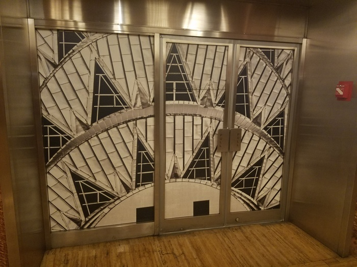 The interior design of the Chrysler Building is distinguished by luxury and sophistication, as luxury materials such as marble, nickel and polished steel were used. The lobby of the building is one of the most beautiful and luxurious spaces, with walls decorated with geometric motifs and warm colors, highlighting the spirit of Art Deco through the use of delicate geometric inscriptions and polished metal ornaments. High ceilings and crystal lamps enhance the sense of well-being and progress. The interior decoration combines geometric simplicity and beauty of details, with touches inspired by the automotive world, such as door and window shapes reminiscent of classic car elements. He also used metallic colors such as gold and silver with floor and wall colors to enhance visual harmony.